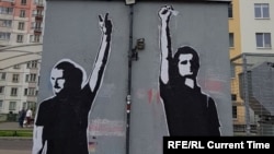 Галанов и Соколовский получили по 10 суток ареста за свою акцию и стали одним из символов белорусского протеста. А местные жители уже больше месяца защищают изображение диджеев от милиции и присланных властями маляров.